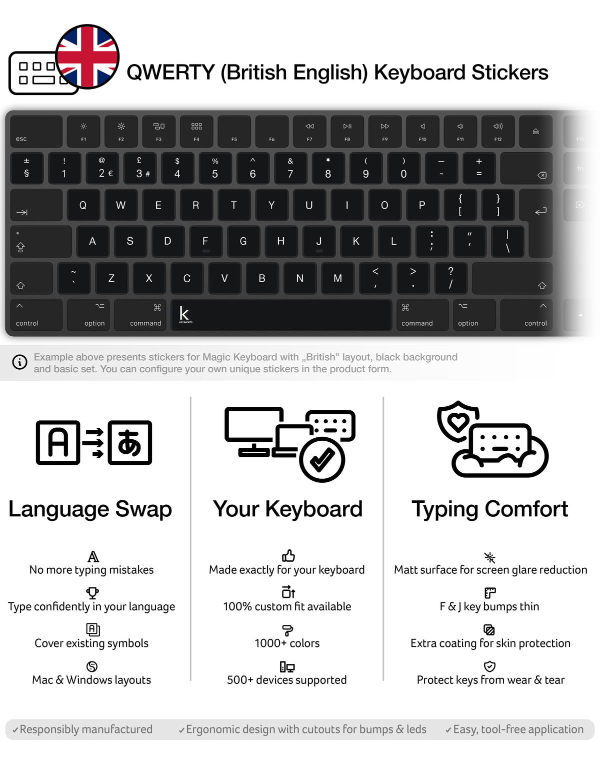 Qwerty British English Keyboard Stickers Keyshorts